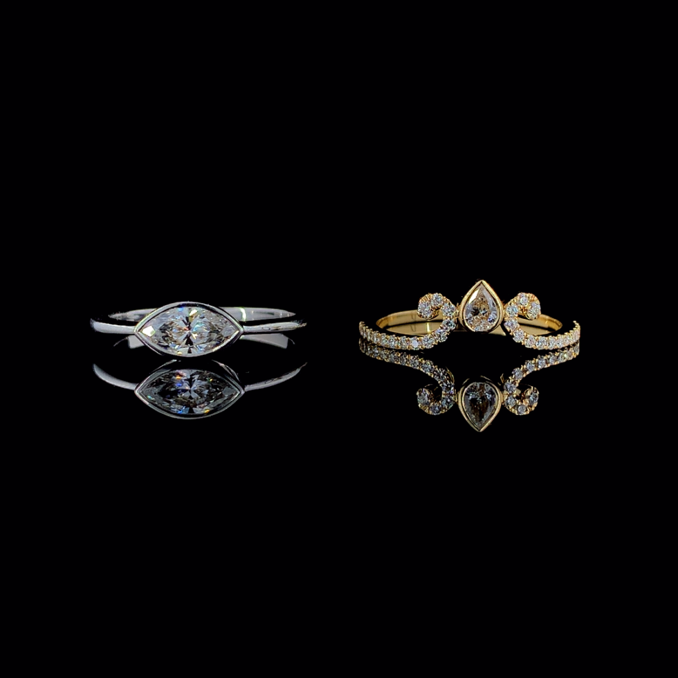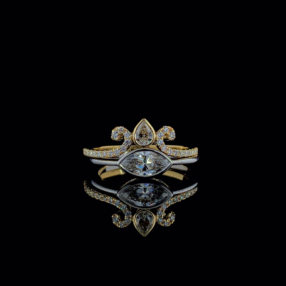Double the charm, double the royalty with the Crown Jewels Marquise & Pear Diamond Tiara Ring Set. This exquisite ring set features two stunning designs — one with a marquise-cut diamond set in 14k white gold, and the other with a pear-cut diamond intricately placed in 14k yellow gold. Together, they create a tiara-inspired look, perfect for anyone who loves a regal vibe.